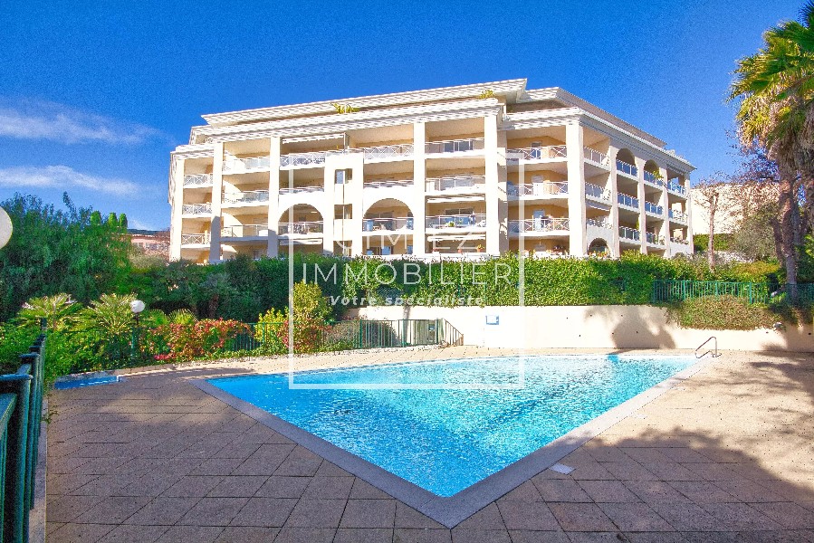 NICE CIMIEZ : Au calme absolu, dans une luxueuse résidence avec parc, gardien et piscine, appartement 3 pièces traversant en Rez de jardin exposé Sud donnant sur profonde terrasse et jardin d'une superficie totale de 40 m².